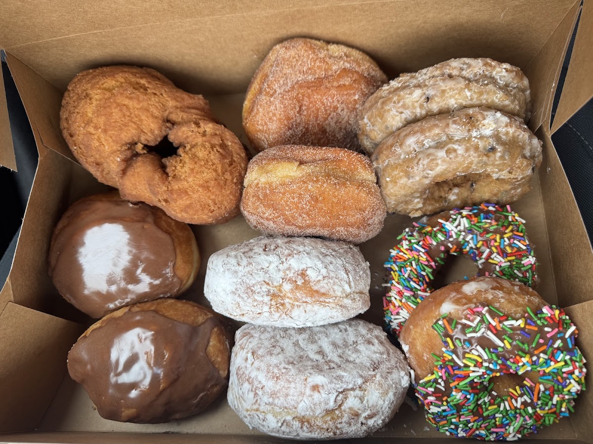 Menu highlights include classic glazed doughnuts, cinnamon rolls, and apple fritters, alongside some interesting twists like blueberry chip donuts and various raised maple varieties. The shop also offers a solid lineup of iced coffees and hot drinks that pair well with the sweets, making it a satisfying stop for folks needing a caffeine boost. A dozen donuts here provide good value and variety, ideal for sharing with friends or family.